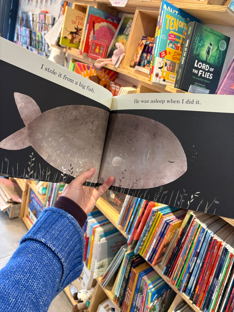 OVER 1 MILLION COPIES SOLD A NEW YORK TIMES BESTSELLER WINNER OF THE KATE GREENAWAY MEDAL WINNER OF THE CALDECOTT MEDAL WINNER OF THE UKLA BOOK AWARDA tiny fish wears a blue hat. It fits him perfectly. But this is not his hat.