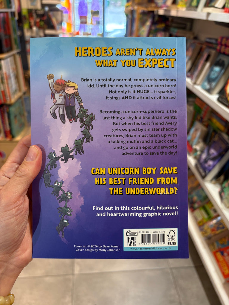 Into a full-blown, sparkling, SINGING unicorn horn! It was the last thing a shy kid like Brian could ever want - but destiny waits for no Unicorn Boy. And when shadowy creatures from another realm kidnap his best friend Avery, Brian must accept his fate as a hero and go on a perilous journey to try and save the day!Can Unicorn Boy save his best friend from the underworld?!