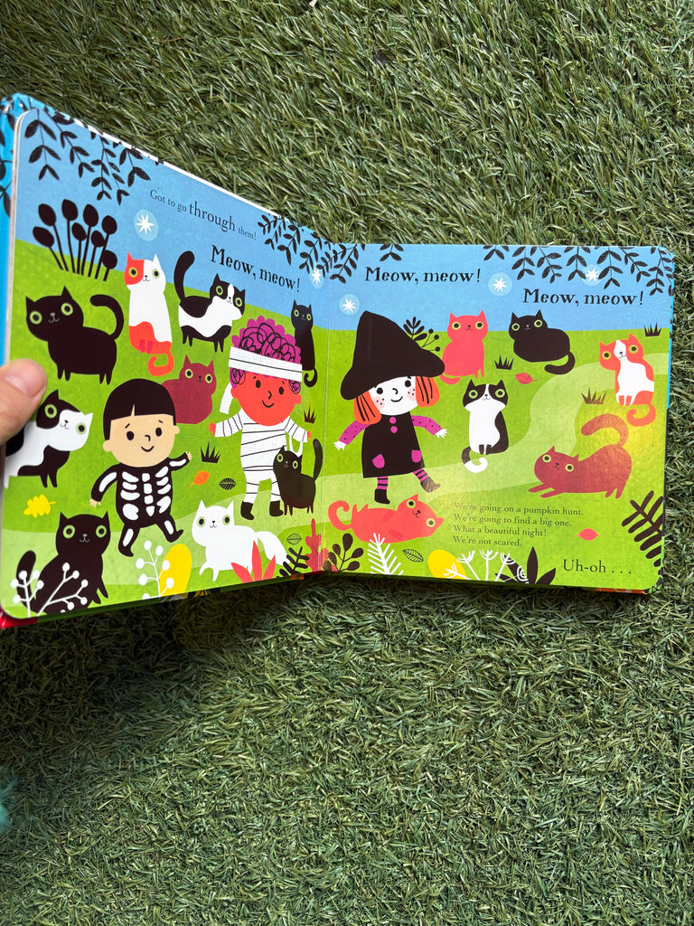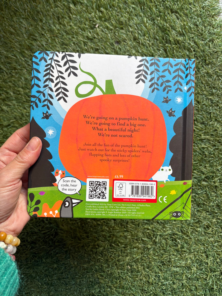Fun and spooky reimagining of the American folk song, 'We're Going on a Bear Hunt'. Three children are hunting for the perfect pumpkin to take trick or treating. But first, they've got to get through the sticky spiders' webs, the flapping bats, and then - worst of all - enter a spooky HAUNTED HOUSE! Will they find a great big pumpkin there .