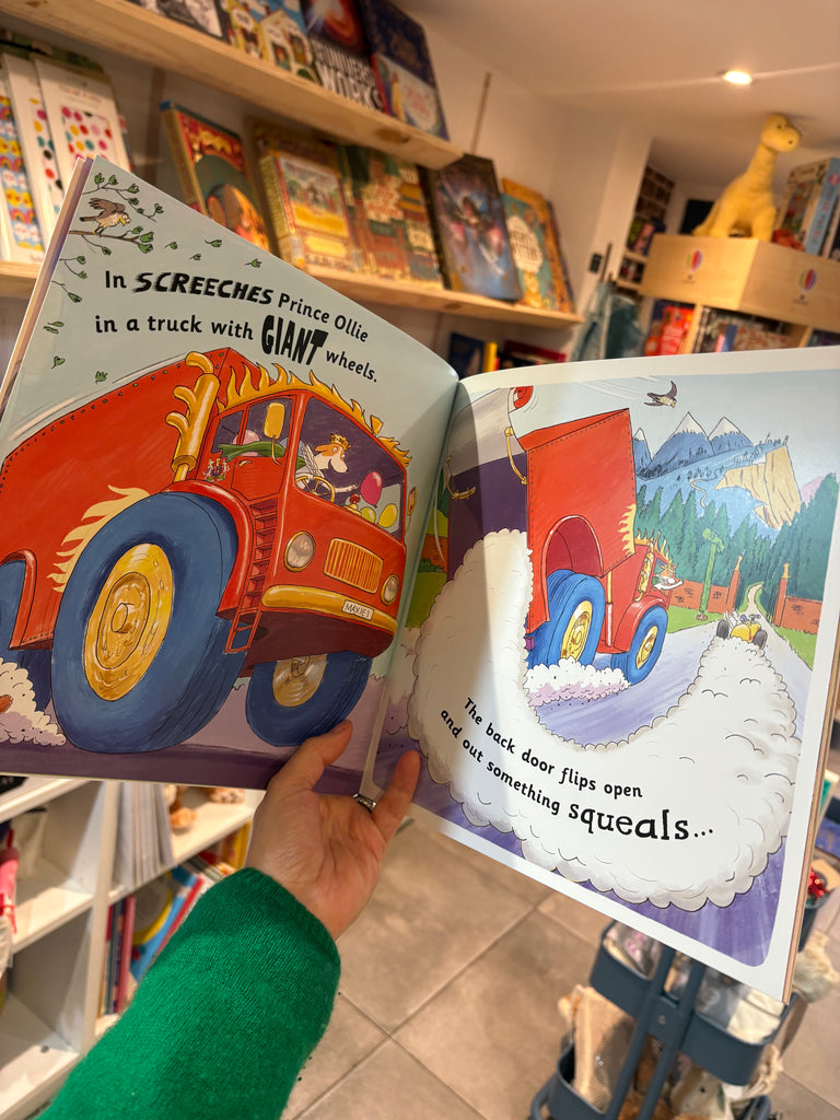 Children will delight in this silly tale of a dog prince in his truck with a very special delivery . . .With each page turn a new vehicle pops out of the last. This book has all the ingredients to charm and enthrall first readers and parents alike.